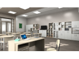 Suprafețele de lucru spațioase și amplasarea convenabilă a mobilierului contribuie la desfășurarea confortabilă a lucrărilor de laborator.