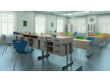 Centrul nostru de fizică reprezintă un spațiu modern și funcțional, ideal pentru procesul de învățare și activitățile de laborator. În fotografie sunt prezentate mostrele noastre de mobilier, care fac parte din setul complet pentru dotarea centrului de fizică.Clasa spațioasă este dotată cu scaune confortabile de diferite culori și mese rezistente, care pot fi ușor mutate și combinate pentru diverse forme de lucru. Mesele sunt echipate cu prize integrate pentru conectarea convenabilă a echipamentului și pentru încărcarea dispozitivelor, ceea ce face procesul de învățare și mai confortabil și tehnologic.Locul de lucru central pentru profesor include o masă cu rafturi pentru depozitarea materialelor și un loc generos pentru a lucra cu un laptop.