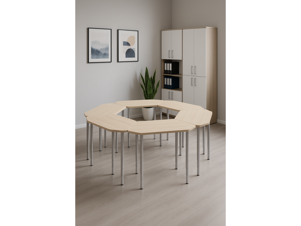 - Flexibilitate în utilizare: Modulele universale de mobilier permit schimbarea configurației sălii de clasă în funcție de nevoile lecției, fie că este vorba de lucru în grup sau de sarcini individuale.