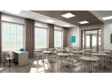 Mobilier — bănci și scaune ergonomice, concepute ținând cont de nevoile elevilor. Înălțimea reglabilă și forma băncilor permit adaptarea la înălțimea și caracteristicile individuale ale elevilor, asigurând confortul și sprijinul posturii. Suprafața de lucru spațioasă oferă suficient loc pentru materiale didactice și dispozitive electronice.