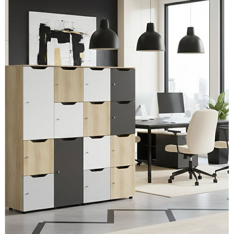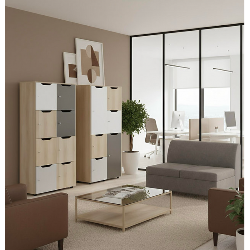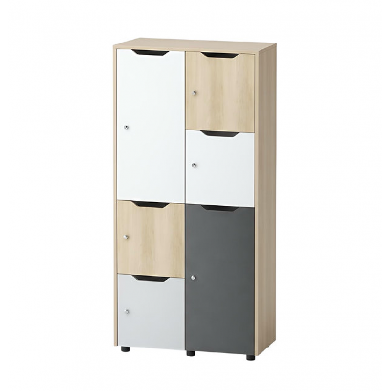 - Dulapul contine 6 rafturi cu usi colorate cu colturi rotunjite si sunt prevazute cu un loc special pentru deschidere.