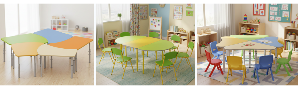 Mesele pentru gradinite oferite de compania noastra, sunt unicale, destinate pentru lucrul in echipe si individual, pentru jocuri interactive, de a interactiona intre copii, de a dezvolta gandirea creativa si de a forma abilitatile de comunicare.