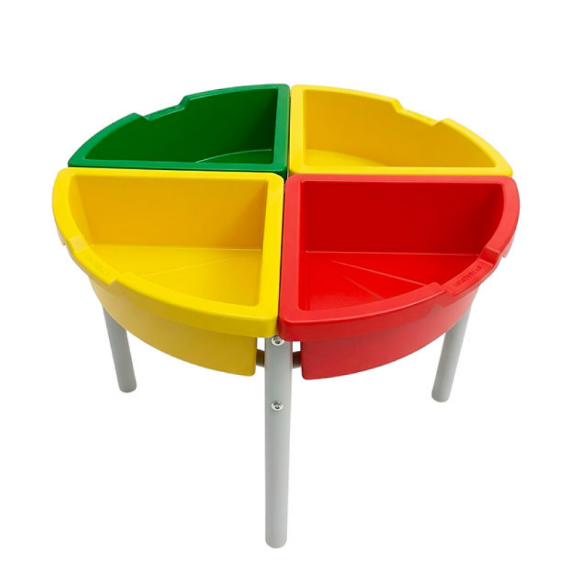 - Masa este realizată din picioare metalice, două cadre și patru containere din plastic detașabile.