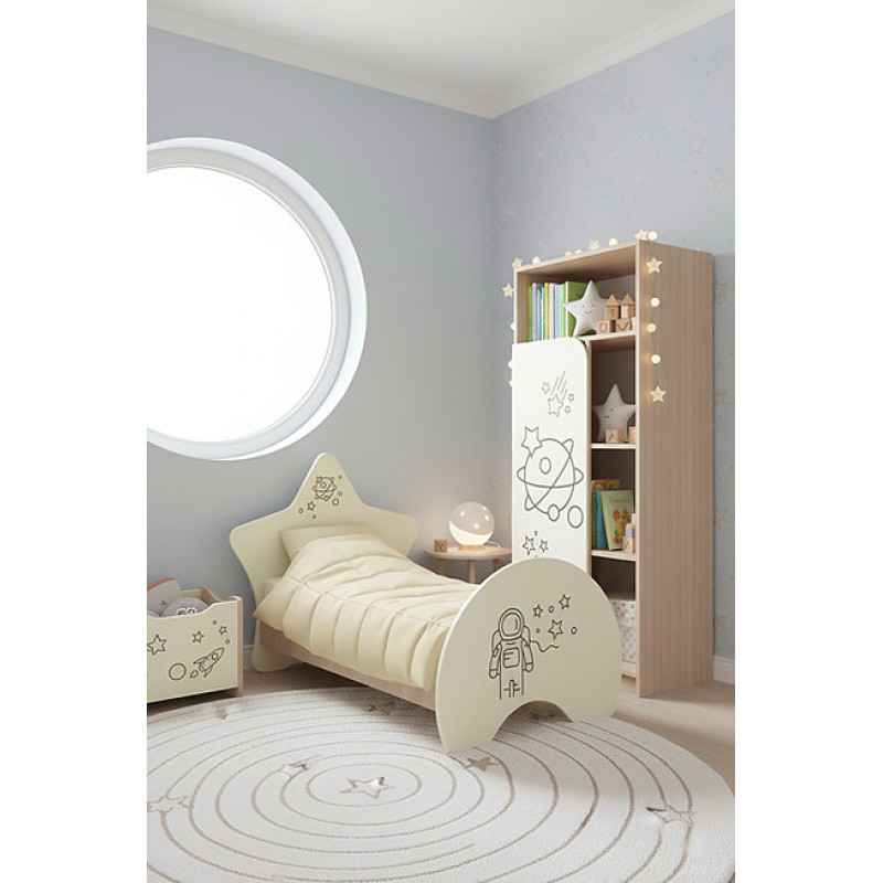 - Partile laterale sunt acoperite cu imprimare foto – imagine spatiului cosmic, stele, cosmonaut.