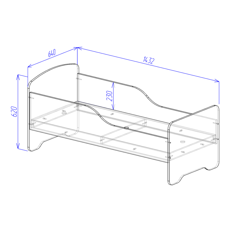 - Toate piesele patului sunt asamblate prin elemente de fixare ascunse și sigure.
