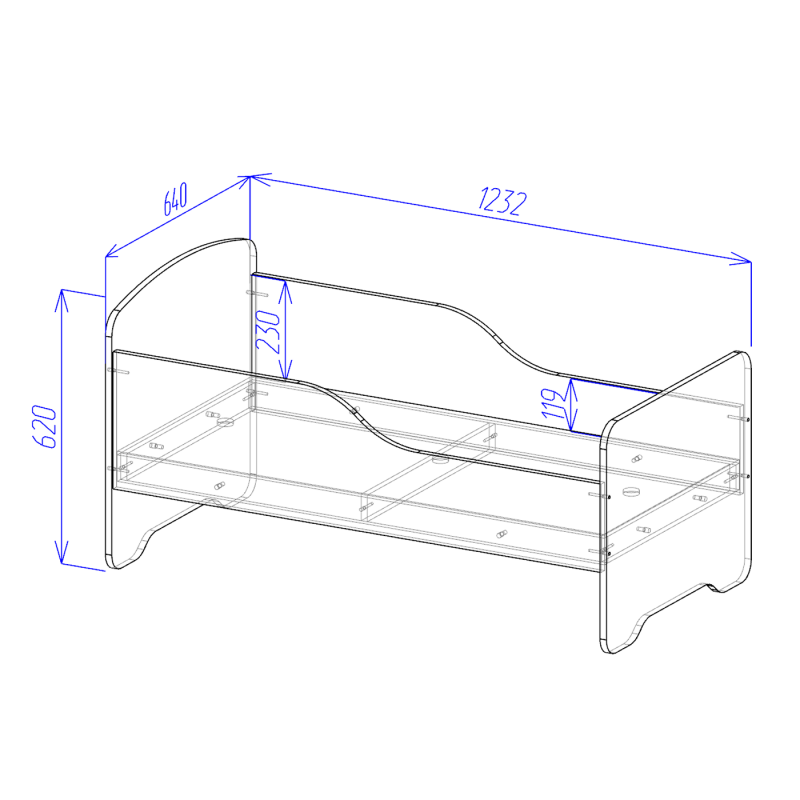 - Dimensiuni (L×l×H): 1232х640х620 mm.