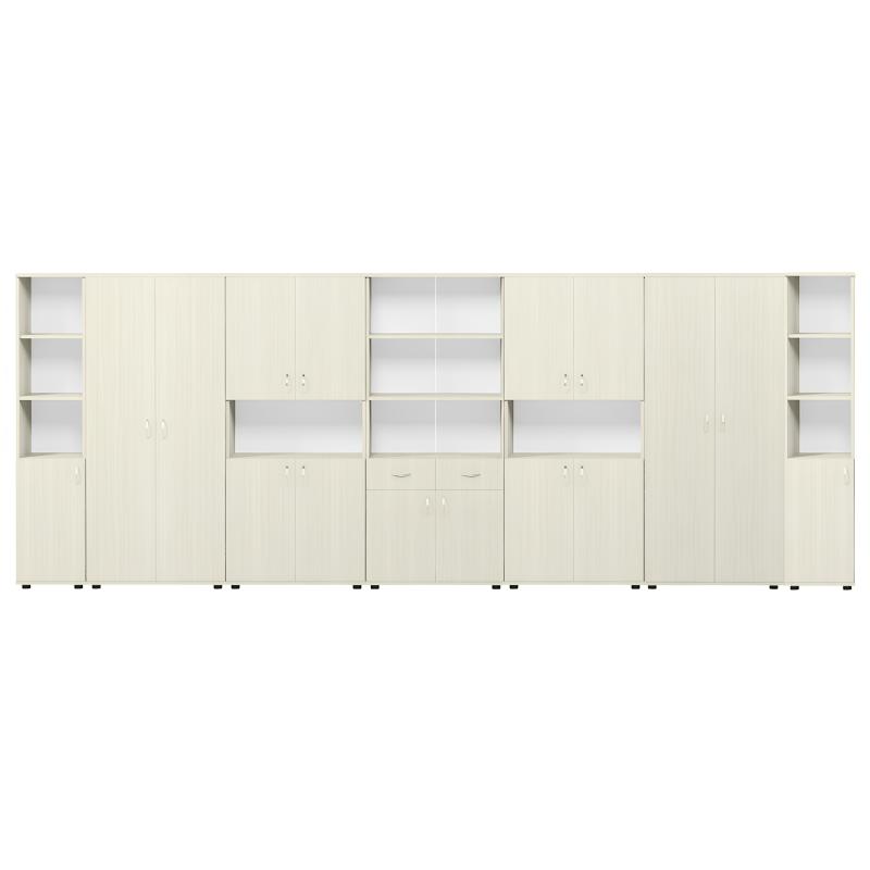 - 5 - Dulap biblioteca cu 4 usi. Dulapul contine 4 rafturi de tip inchis si o nisa de tip deschis pe mijloc;