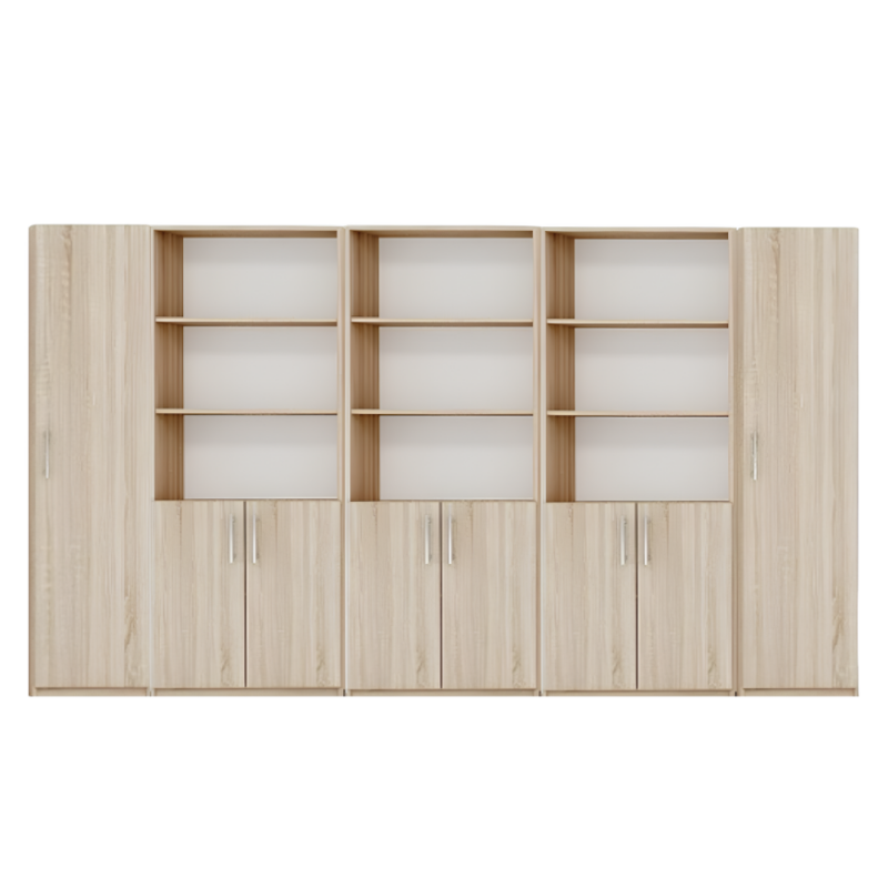 • 3 - Dulapul este echipat cu trei rafturi deschise în partea de sus și două rafturi închise în partea de jos.