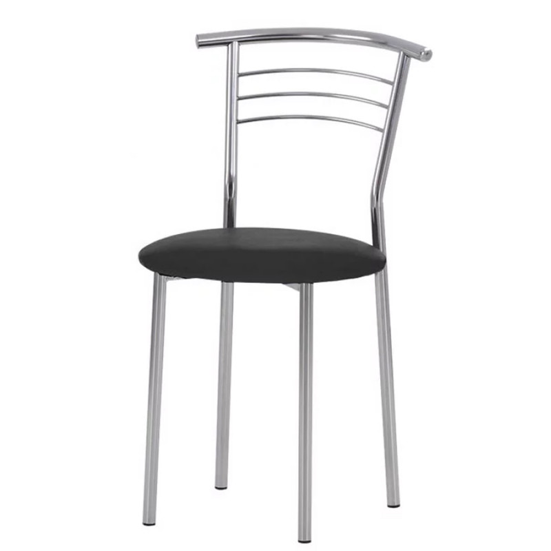 Scaun rezistent cu carcasa metalica cromata. Are sezut moale tapitat din piele artificială. O opțiune practică pentru interiorul unei case sau cafenea. Garantie 12 luni.