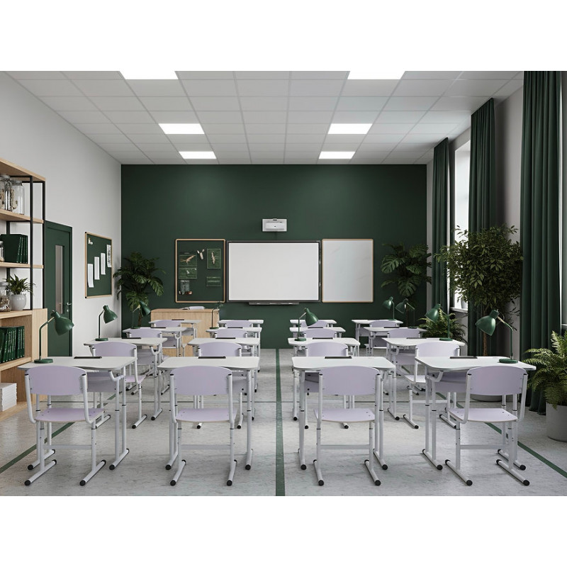 Set scolar individual cu polita, pe teava rotunda, reglabil pe inaltime