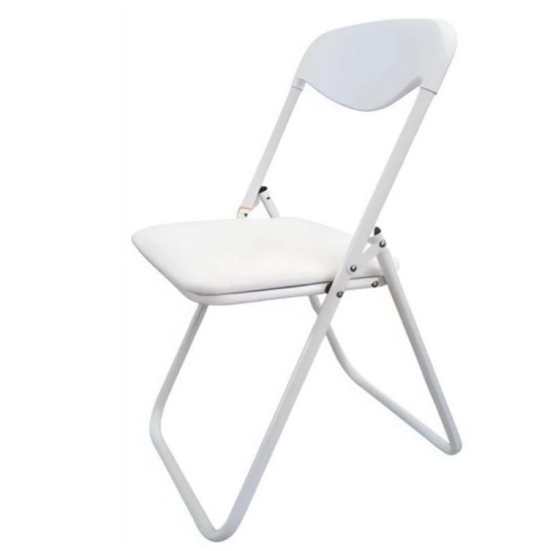 Scaun pliabil JACK white tapitat cu pielea eco pe piciore din metal vopsit .