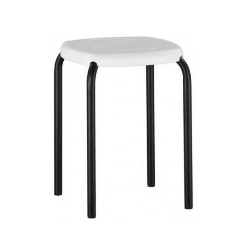 Taburet cu carcasul metalic vopsit. Sezut din plastic. uloare albă și neagră.
